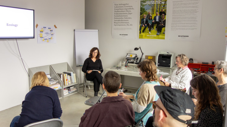 Ecology of Care is rooted in queer-feminist activism and grass-root movement, which focussed on community-care. The term and general practice could also include art-based initiatives supporting disabled and people with access needs. As a philosophical background we could take Felix Guattari and his concept of “ecosophy”, in which environment, social relations and human subjectivity form an inseparable unit. According to Guattari care is not just an interpersonal concept, but rather a comprehensive, ecological model for social and institutional design. As mediators for Neue Auftraggeber, we somehow practice a new form of curating, which is also a form of caretaking. The overarching goal of an ecology of care is to create alternative structures and spaces for people and communities who are excluded from discourse and excluded from the opportunity to shape society. And this aim is at the core of the model of citizen-commissioned art we practice at Neue Auftraggeber.