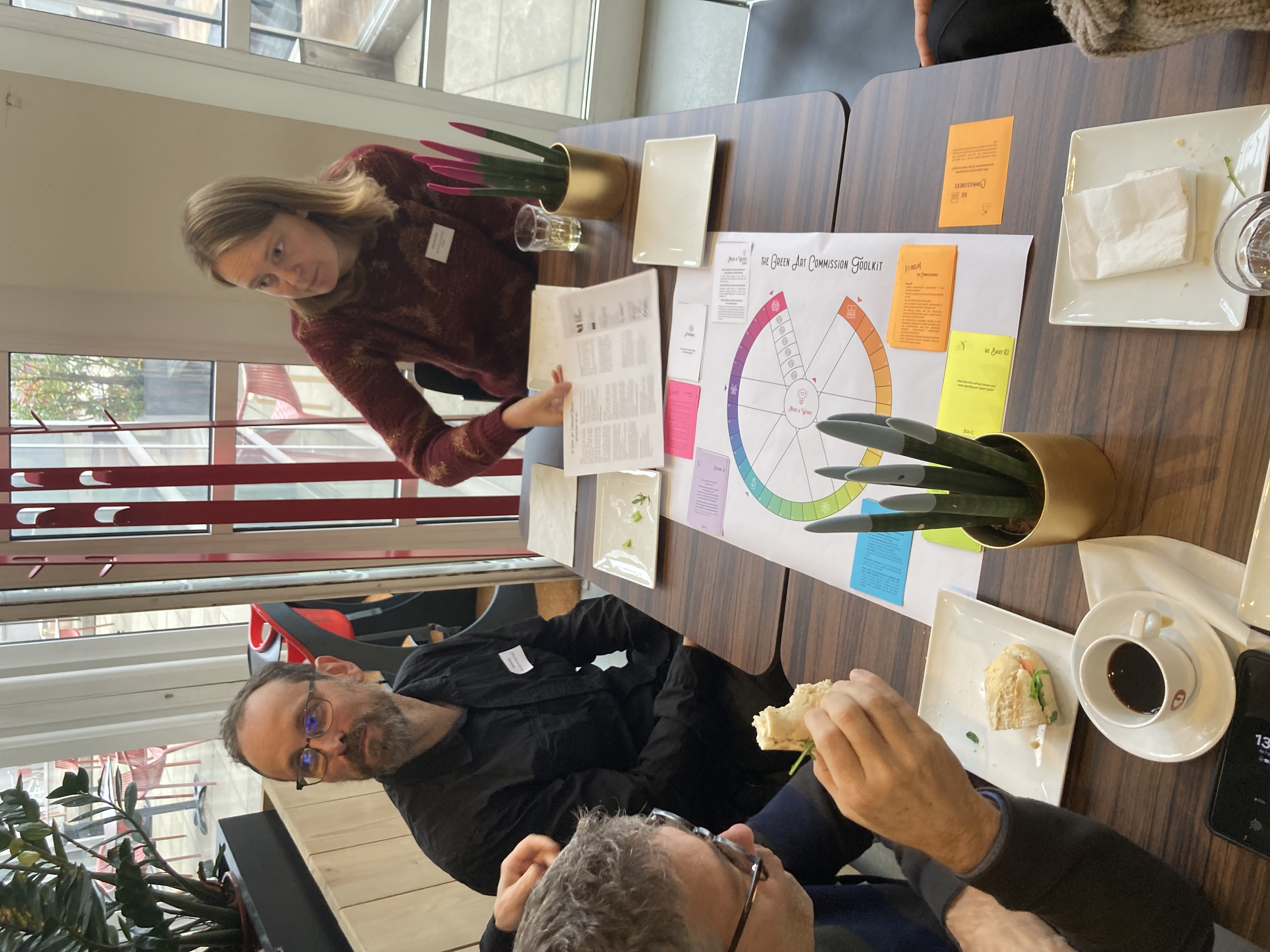 During lunch, copies of the Green Art Commission Toolkit were distributed on different tables, giving participants the chance and opportunity to learn more about the Toolkit, its structure, questions, and main objectives. Some even asked to take one to play with colleagues or fellow parties.