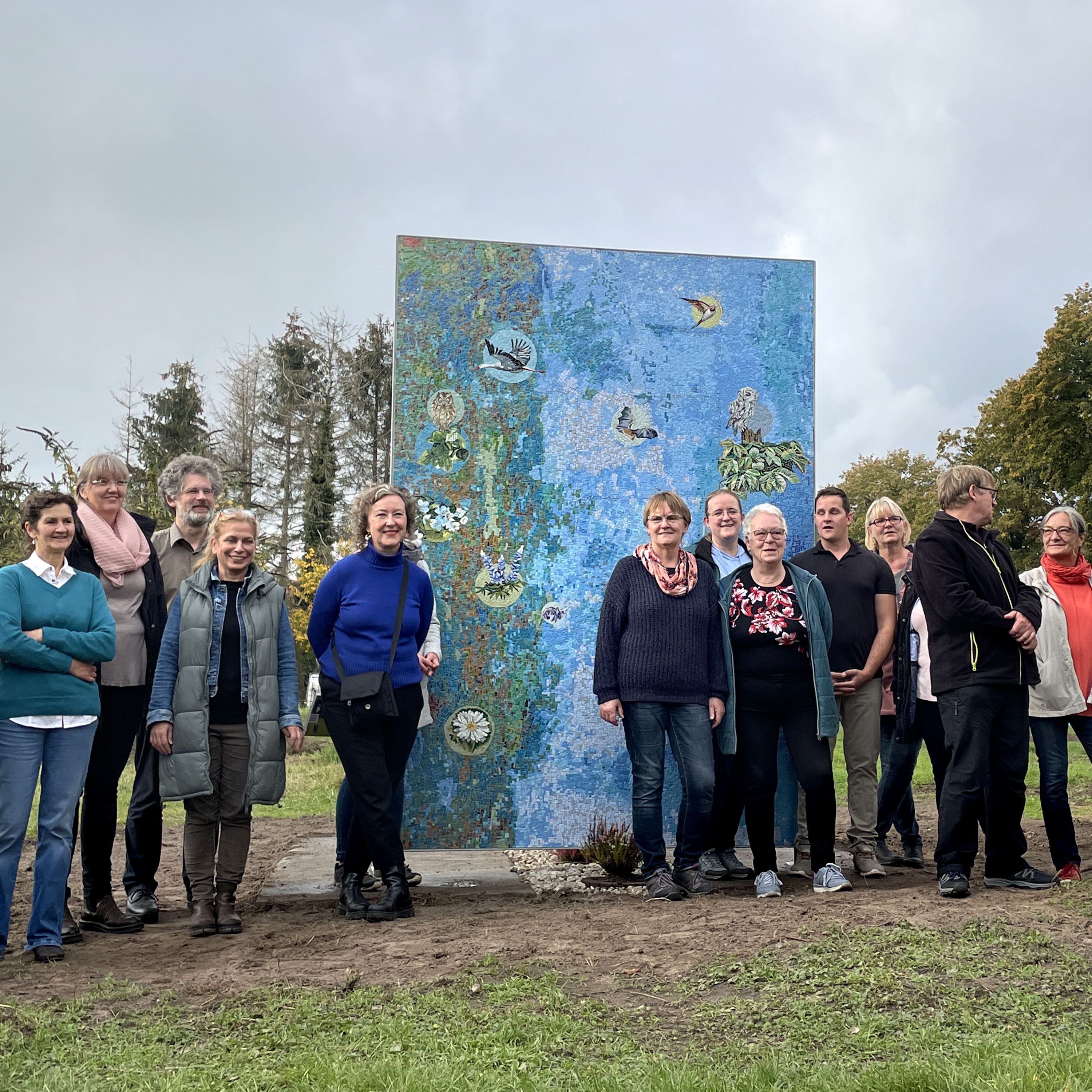 In 2022 a mosaic by Antje Majewsi showing plants and animals the villagers love was inaugurated (Photo: Alexander Koch, Umsetzung Mosaik Cosmomusivo, Berlin)